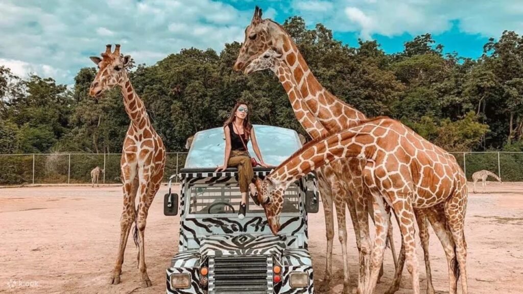 For a fun and educational family trip, visit the “Boh Phloi Safari Park” and “Mallika R.S. 124” in Kanchanaburi. At Safari Park, experience close encounters with giraffes, lions, and other wildlife while driving through large open spaces. Highlights include feeding animals and a Baby Zoo for children. Following this, explore Mallika, a cultural attraction that recreates the Rattanakosin era with traditional attire rentals, ancient markets, and boat rides. Both sites offer unique experiences for all ages and can be conveniently visited together, especially with the help of a local taxi service for a hassle-free outing.